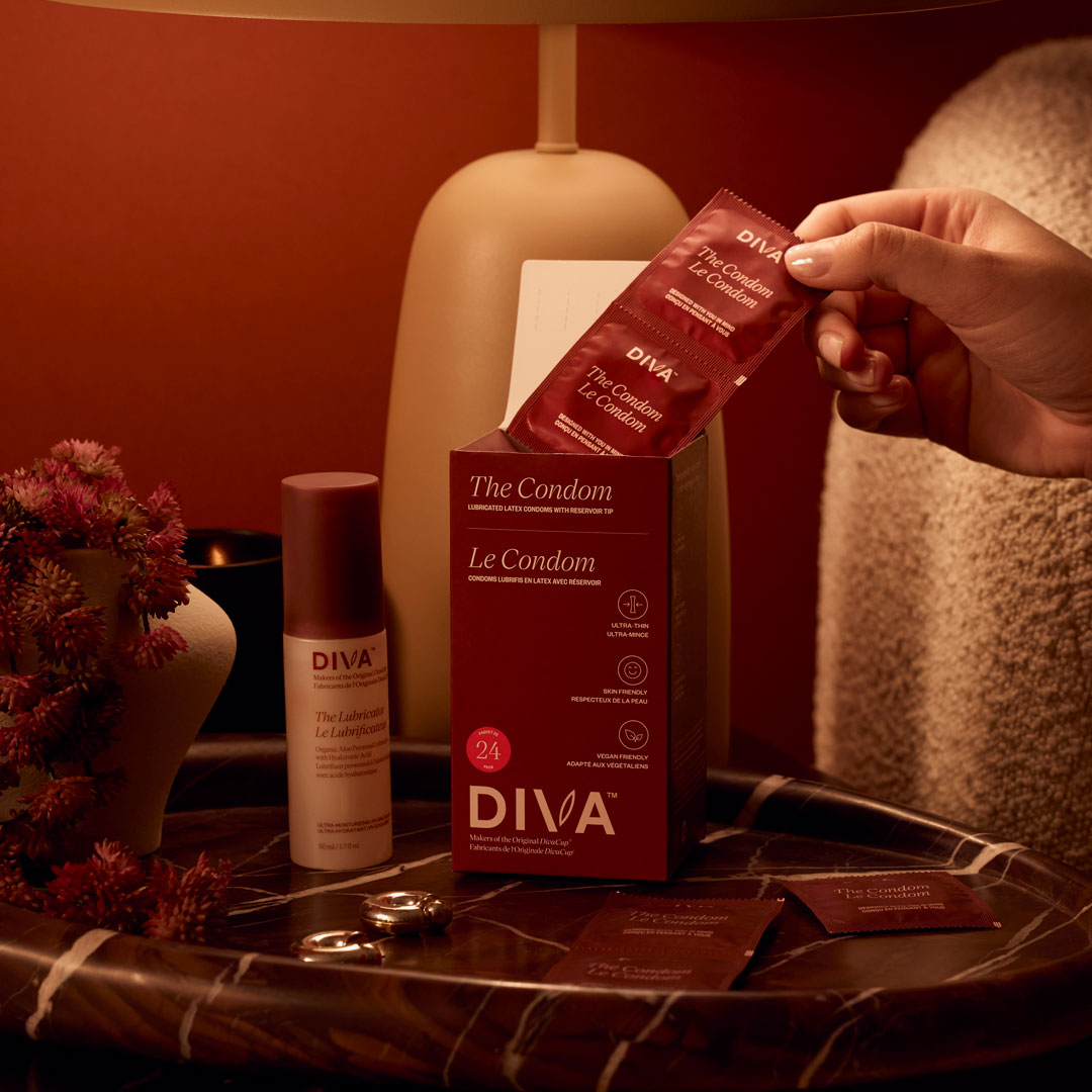 The DIVA Condom is designed to work perfectly with DIVA’s aloe-based, pH-balanced, fragrance-free lubricant, creating a smooth, comfortable, and pleasurable experience as part of a conscious intimacy routine that keeps her in mind.