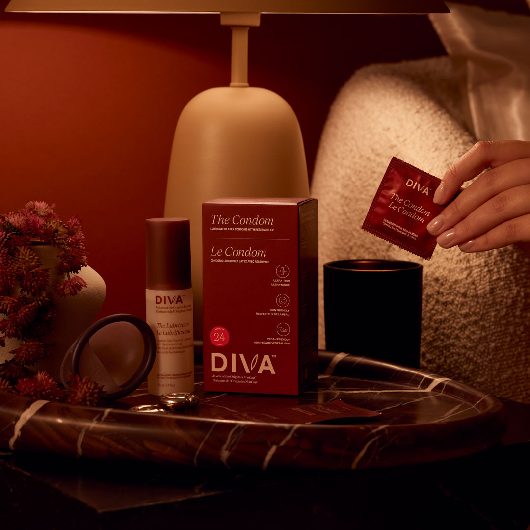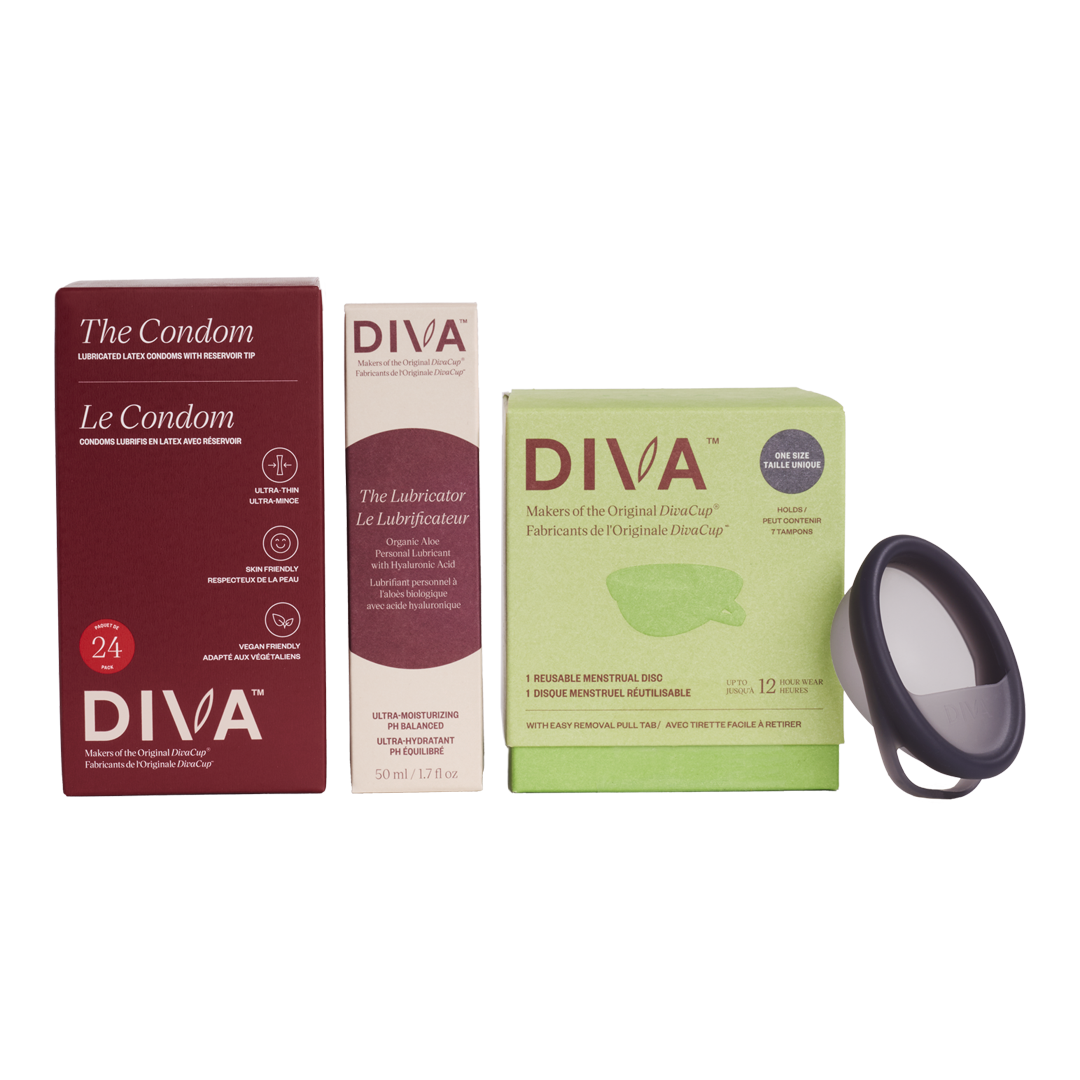 Passion doesn't have to pause for your period. Prioritize your vulva, and your sex life, and feel comfortable in your body no matter the time of the month. Each bundle includes The Condom, The Lubricator, and a DIVA™ Disc